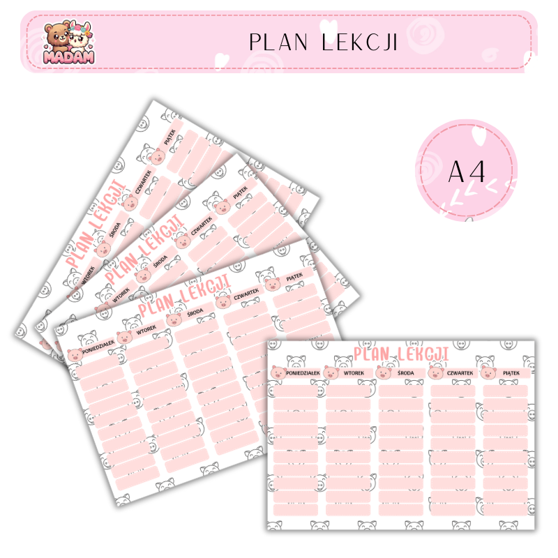 Plan lekcji A4 MaDam Creative – prosty sposób na porządek w szkolnym tygodniu