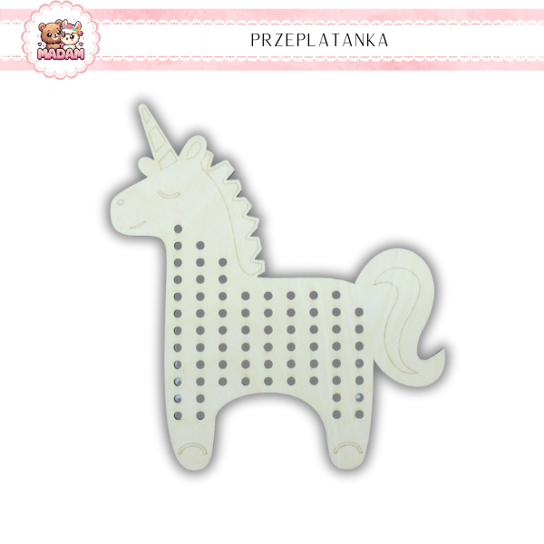 Przeplatanka drewniana Jednorożec 19 cm otwór 4 mm, MaDam