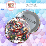 Przypinka 58mm MaDam Kot w świątecznym sweterku – Rybki najlepiej smakują w świątecznym stylu!