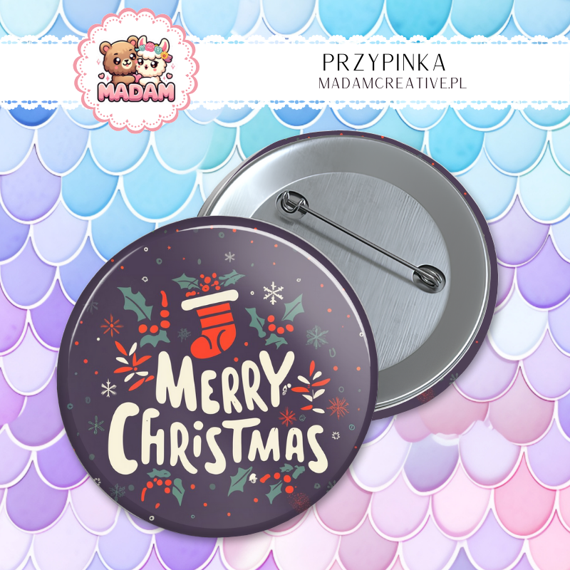 Przypinka 58mm MaDam Merry Christmas– Idealna przypinka dla każdego fana świątecznych klimatów!