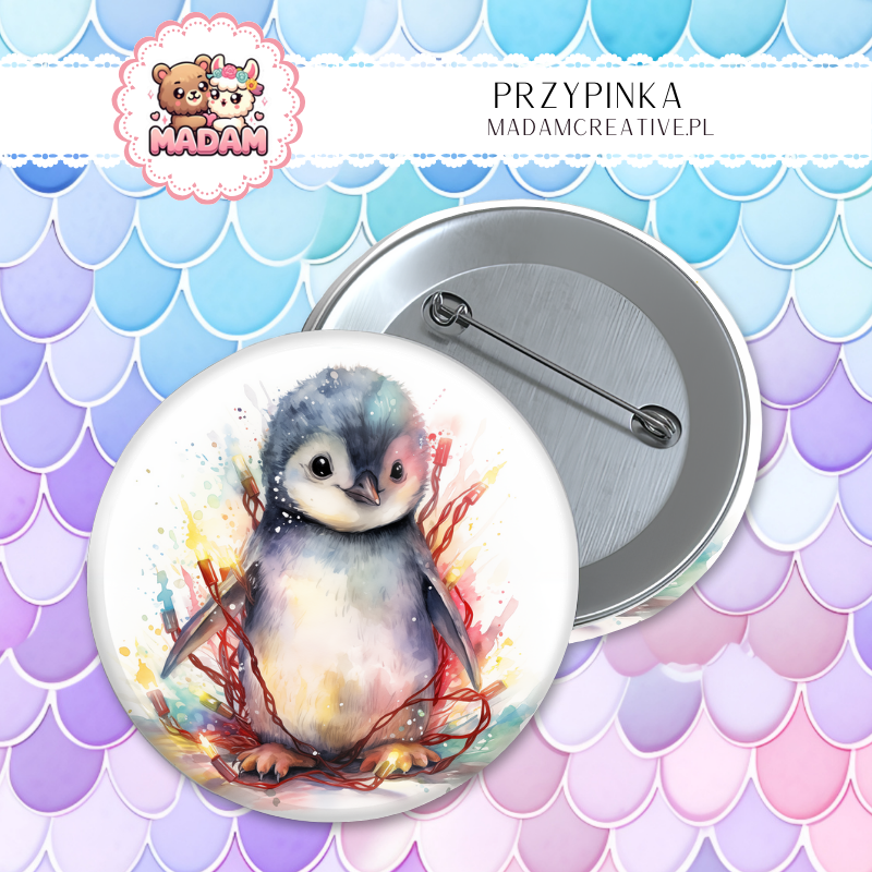 Przypinka 58mm MaDam Pingwinek w zimowej scenerii – Chodź, wprowadźmy trochę arktycznego chłodu na święta!