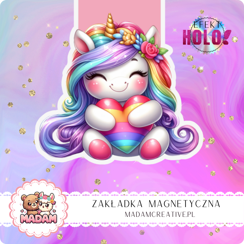 Zakładka Magnetyczna Holograficzna MaDam Jednorożec Zosia – Tęczowe serce dla książkowych przygód!