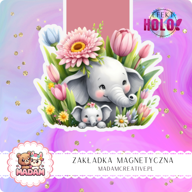 Zakładka Magnetyczna Holograficzna MaDam Słonik Stefan – Mały książkowy odkrywca na tropie literatury!