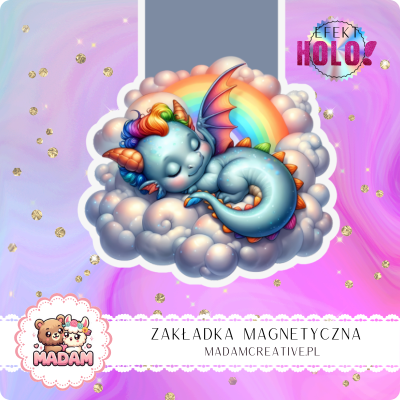 Zakładka Magnetyczna Holograficzna MaDam Smok Drako – Tęczowy smok w chmurach, który doda magii każdej stronie!