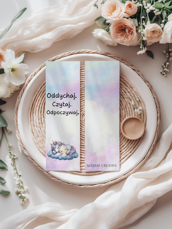 Zakładka do książki 6x18 cm Jednorożec Oddychaj Czytaj Odpoczywaj MaDam Creative