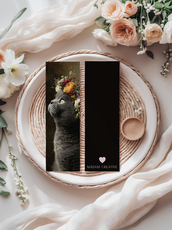 Zakładka do książki 6x18 cm kot w jesiennych kwiatach MaDam Creative