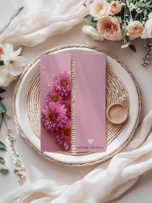 Zakładka do książki 6x18 cm różowe kwiaty z kroplami MaDam Creative