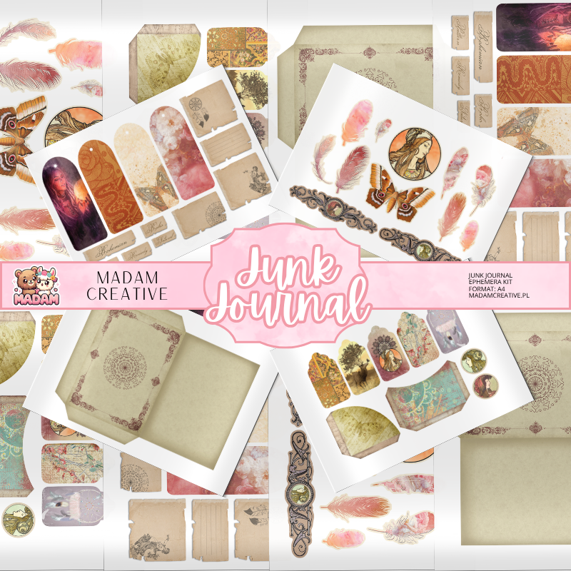 Zestaw Ephemera do Junk Journalingu i Scrapbookingu Boho – Journal Kit MaDam Creative