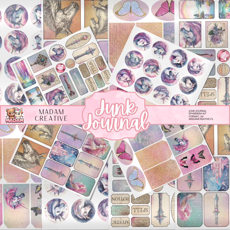 Zestaw Ephemera do Junk Journalingu i Scrapbookingu Jednorożce – Journal Kit MaDam Creative