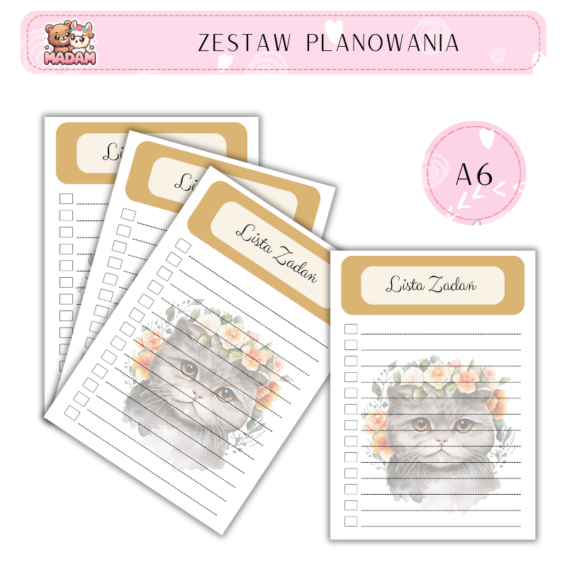 Zestaw Planowania Kot A6 Lista Zadań, MaDam