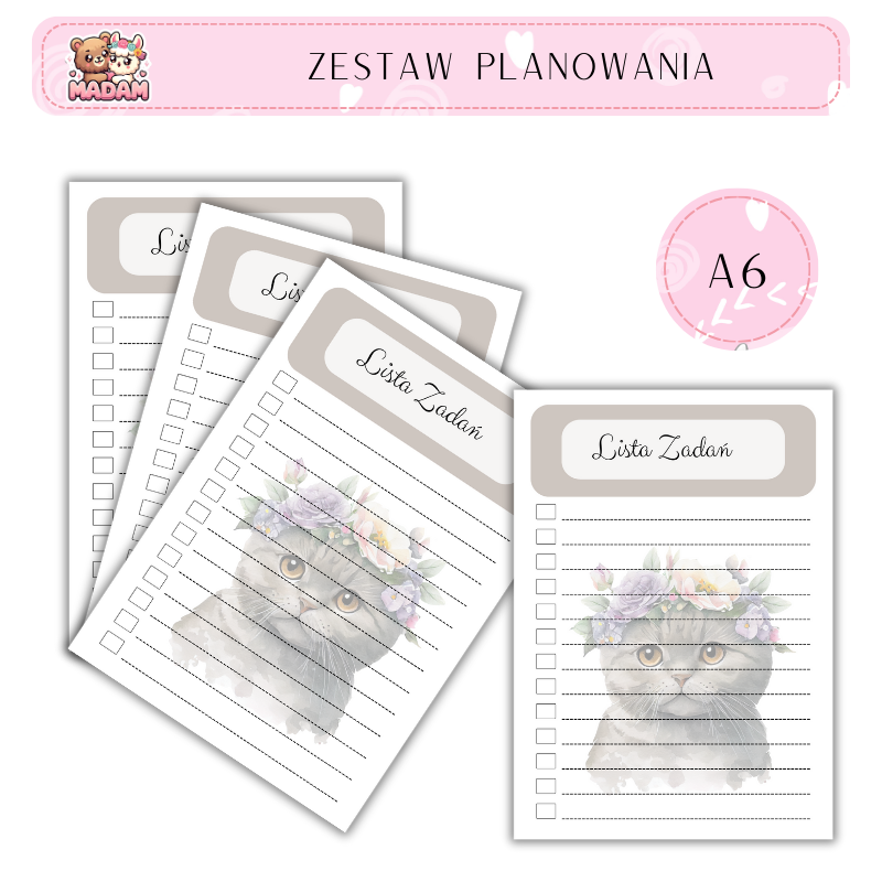 Zestaw Planowania Kot A6 Lista Zadań, MaDam