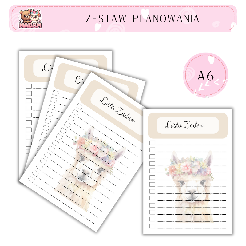 Zestaw Planowania Lama A6 Lista Zadań, MaDam