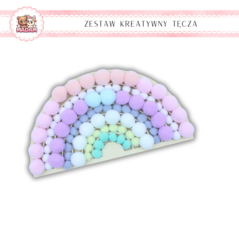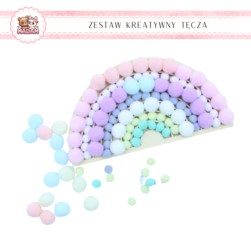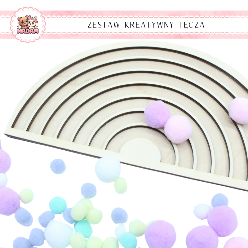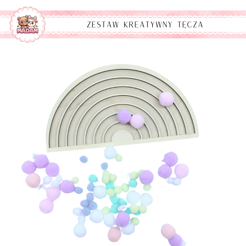 Zestaw Kreatywny Drewniana Tęcza + Pompony MaDam - Odkryj Kreatywność Twojego Dziecka!