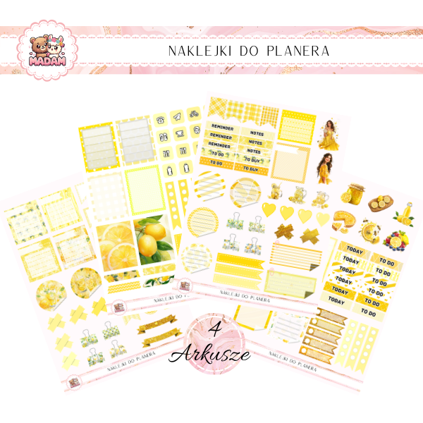 Zestaw naklejek do planera MaDam "Cytrynowa Świeżość"-Planuj z energią – cytrynowe naklejki na każdy dzień!