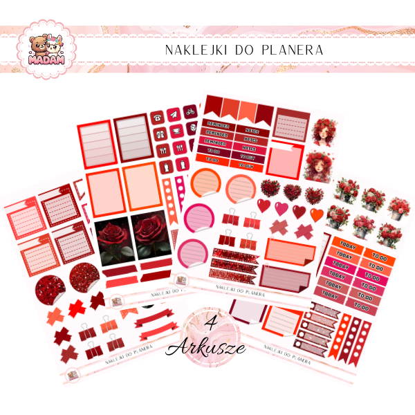 Zestaw naklejek do planera MaDam 'Róże Miłości' – Dodaj odrobinę miłości do swojego planera!