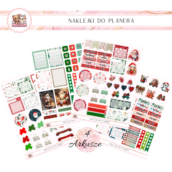 Zestaw naklejek do planera MaDam 'Świąteczna Magia' – Zaplanuj święta z uśmiechem i gorącą czekoladą!